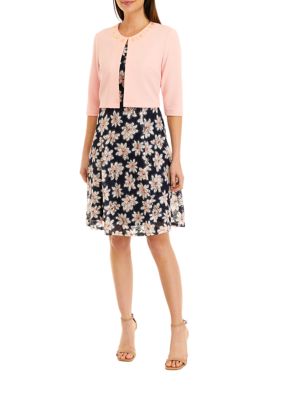 Perceptions Women S Short Sleeve Floral Lace Dress And Jacket Set Belk